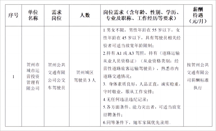 賀州市城市運(yùn)營(yíng)投資管理有限公司2023年第一次招聘公告(第二批次)2023-08-11