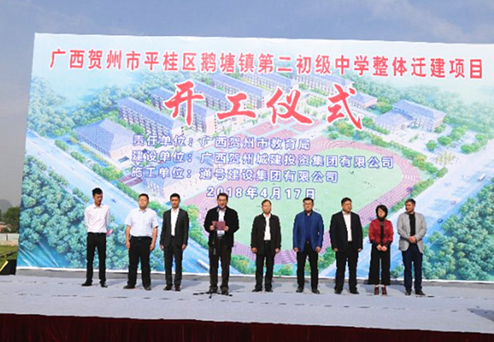 4月17日上午,我市首個應用裝配式建筑技術的教育基礎建設項目開工儀式在平桂區鵝塘鎮第二初級中學整體遷...