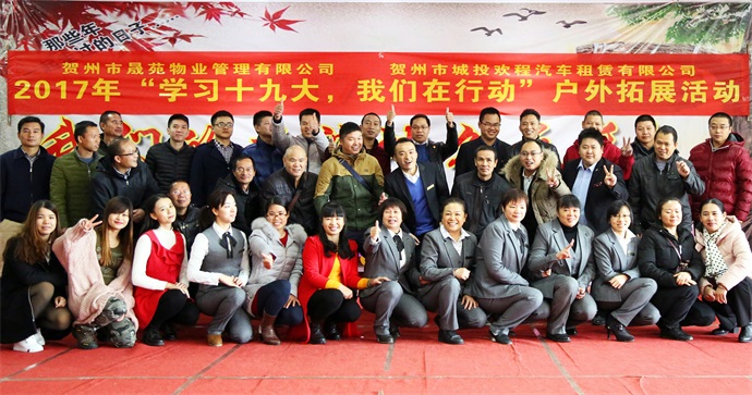 晟苑物業公司與歡程汽車租賃公司聯合開展“學習十九大,我們在行動”戶外拓展活動2017-11-25